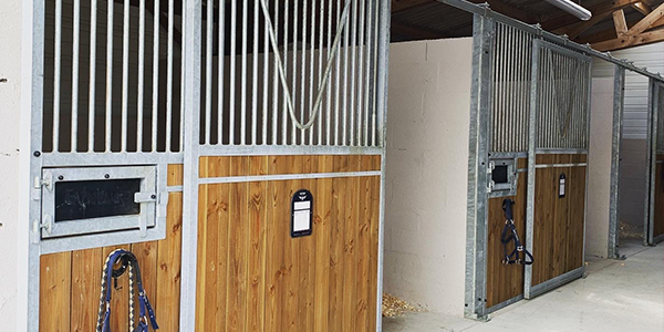 Les boxes font 4 mètres X 4 mètres avec de la pailles ou des copeaux. Le foin est à volonté au Haygain®